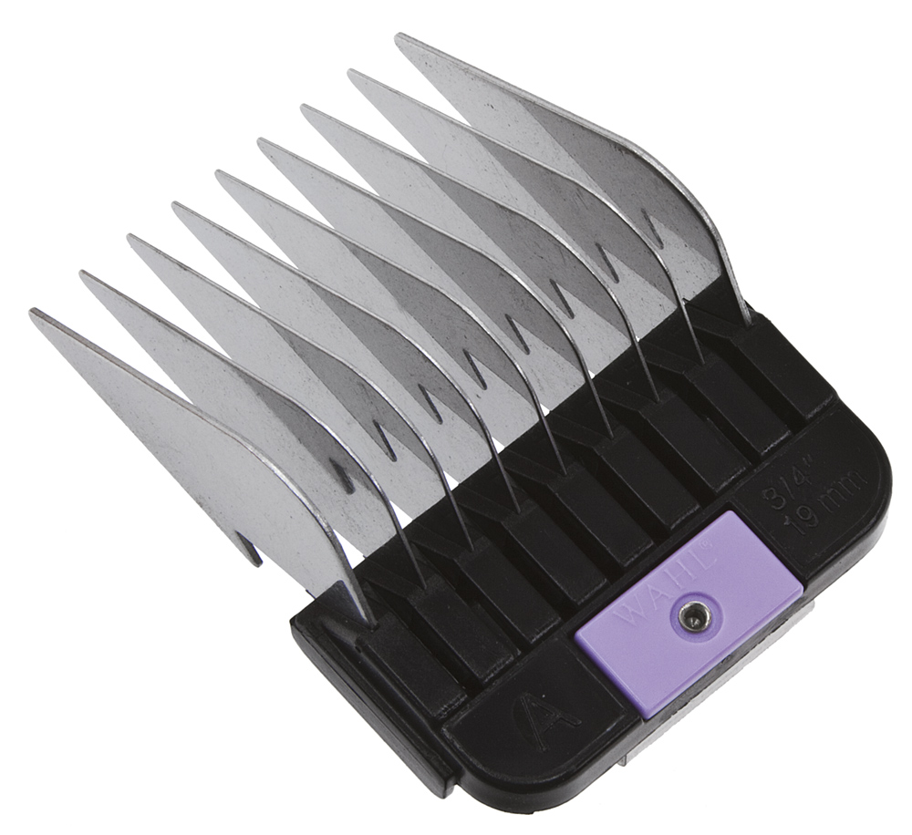 [0] => Afstandskam i rustfrit stål. Perfekt til at trimme hundens pels på en ensartet længde.