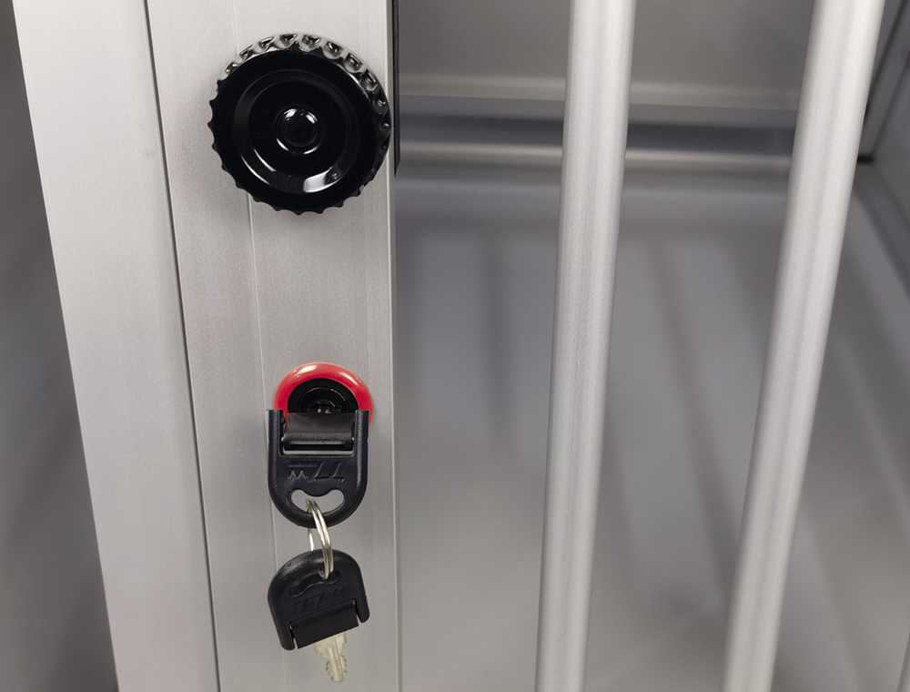 Stabil og stille; vægge, loft og gulv lavet af slagfast og brudsikkert aluminiums hårdplade; skrånende for- og bagside for optimal udnyttelse af bagagerummet; med nødudgang; låsbar skruelåg