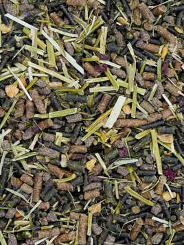 | Composition | Lucerne, havreskaller (fiberdel uden kerne), ekstruderet hørfrø, sojaskaller, lucernestrå, roepiller, rapsfrømel, ærter, græsgrønmel, melasse, sojaolie, sojabønner ristet, kartoffelstivelse, hørfrø, rødbede, hørfrøkage, cikorie |