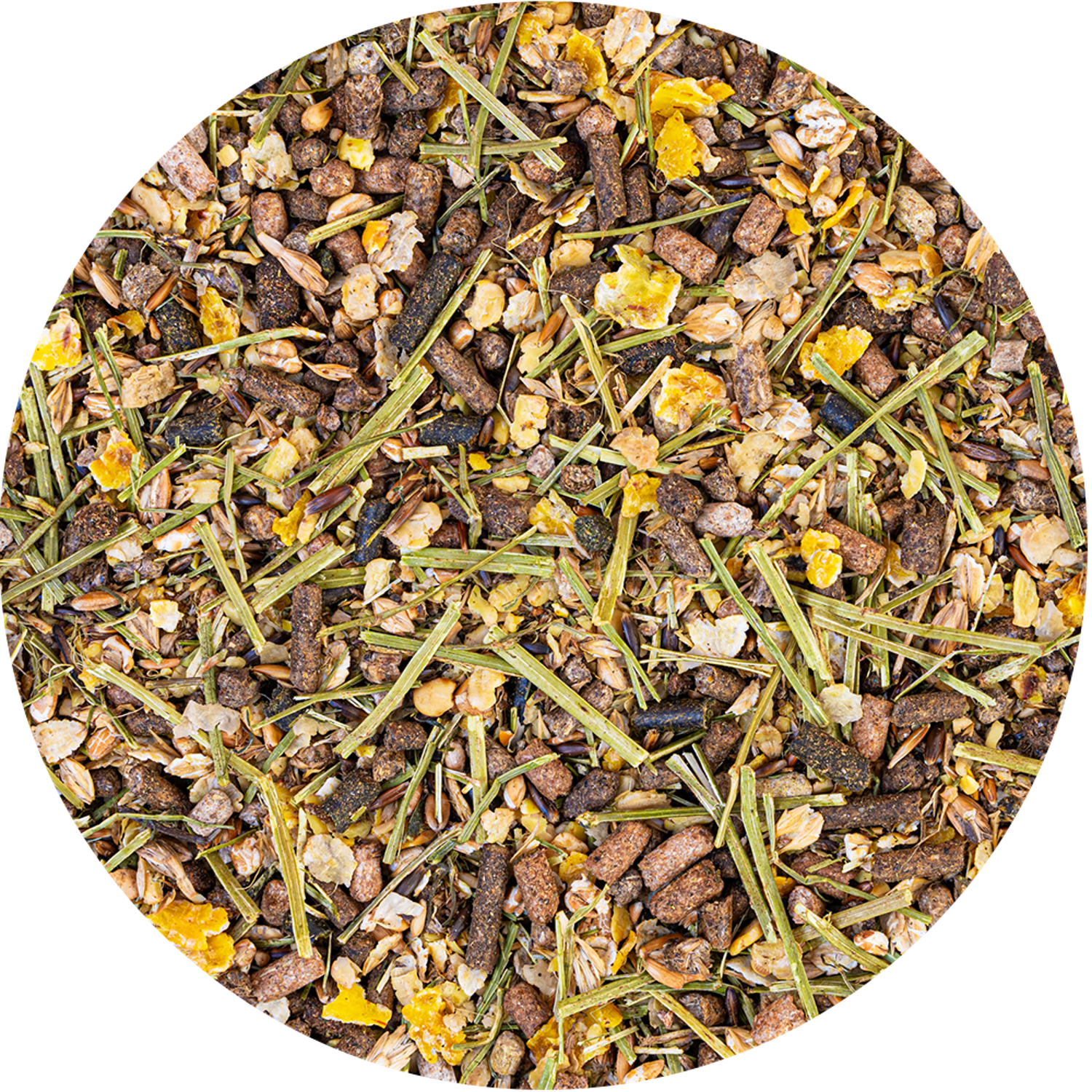 | Composition | Hvedeklid, Sojabønner (non GMO), hørfrø klid, Sort havre, byg, majs, lucerne, Fermenterede lucerne piller, Rapsolie, Puffet byg, Spelt, Hørfrø, Sukkerroepulp, majsmask, hestebønneskaller, Rapskagemel, Ærter, Cikorie |