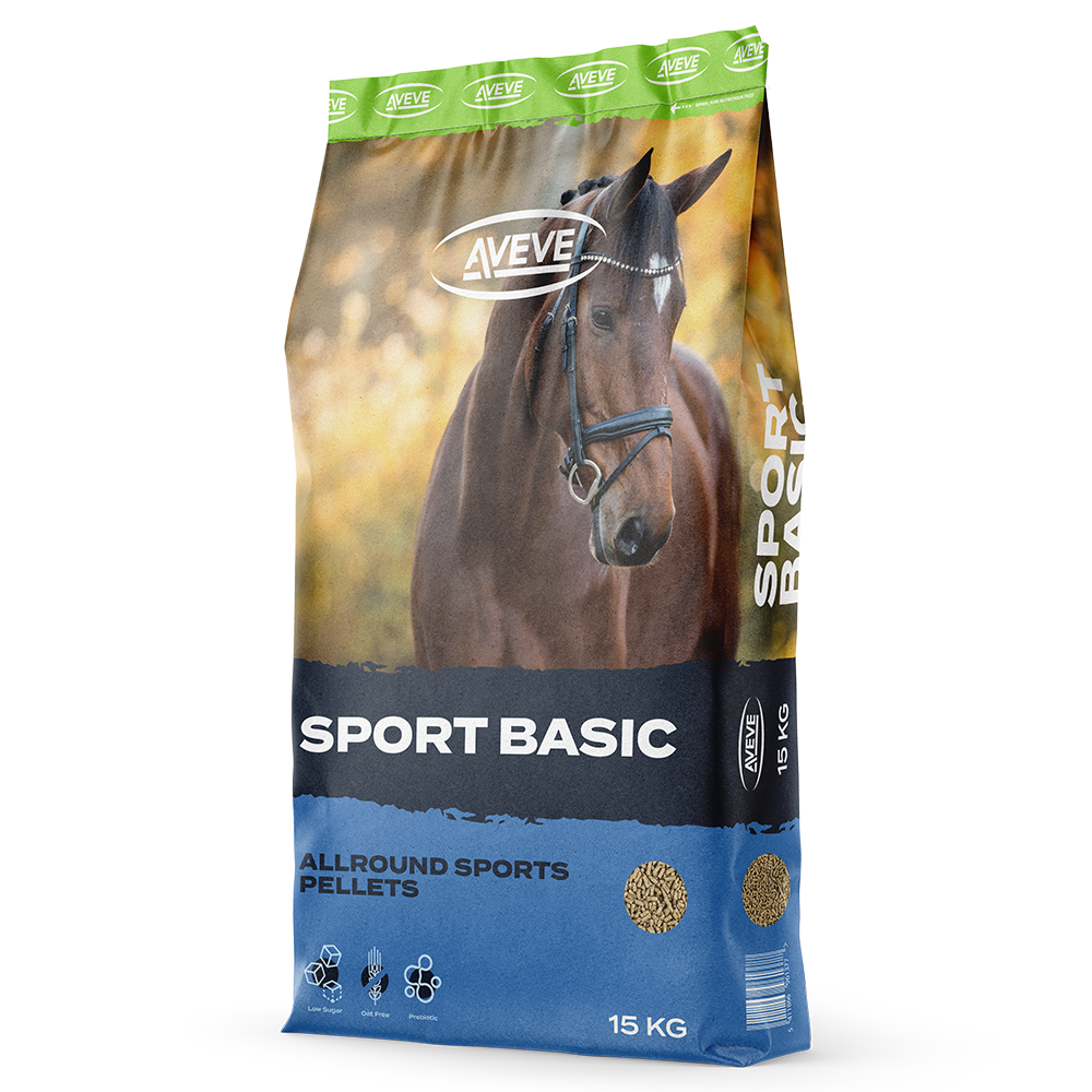 Sport Basic er et pelleteret, havrefrit foder, udviklet til heste inden for både sport og avl.