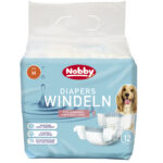 Engangsbleer til tæver i forskellige størrelser med høj absorberingsevne og elastisk bånd i taljen for en behagelig pasform. Med klæbende lukning og åbning til hale. Velegnet til tæver i løbetid, inkontinens eller efter operationer.