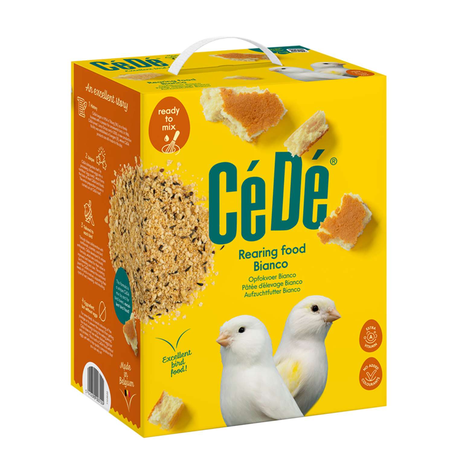 [description] => CéDé opvækstfoder bianco i forskellige størrelser til avl af recessive hvide kanariefugle og mosaike kanariefugle. Indeholder højt niveau af vitamin A og lavt niveau af naturlige carotenoider for at undgå farvning af fjerdragten.