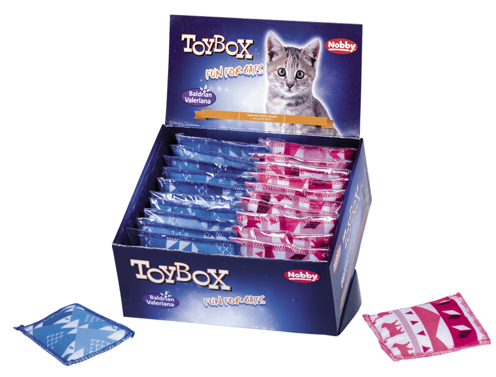[description] => Bomuldspude med valerianarod; valeriana stimulerer legeinstinktet; pude knitrer; 2 assorterede farver