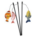 [0] => Display 9 stykker; fiskestang med plys fisk med katteurt; fisk med knitrende krop; stang: 42 cm; elastikbånd med legetøj: 63 cm