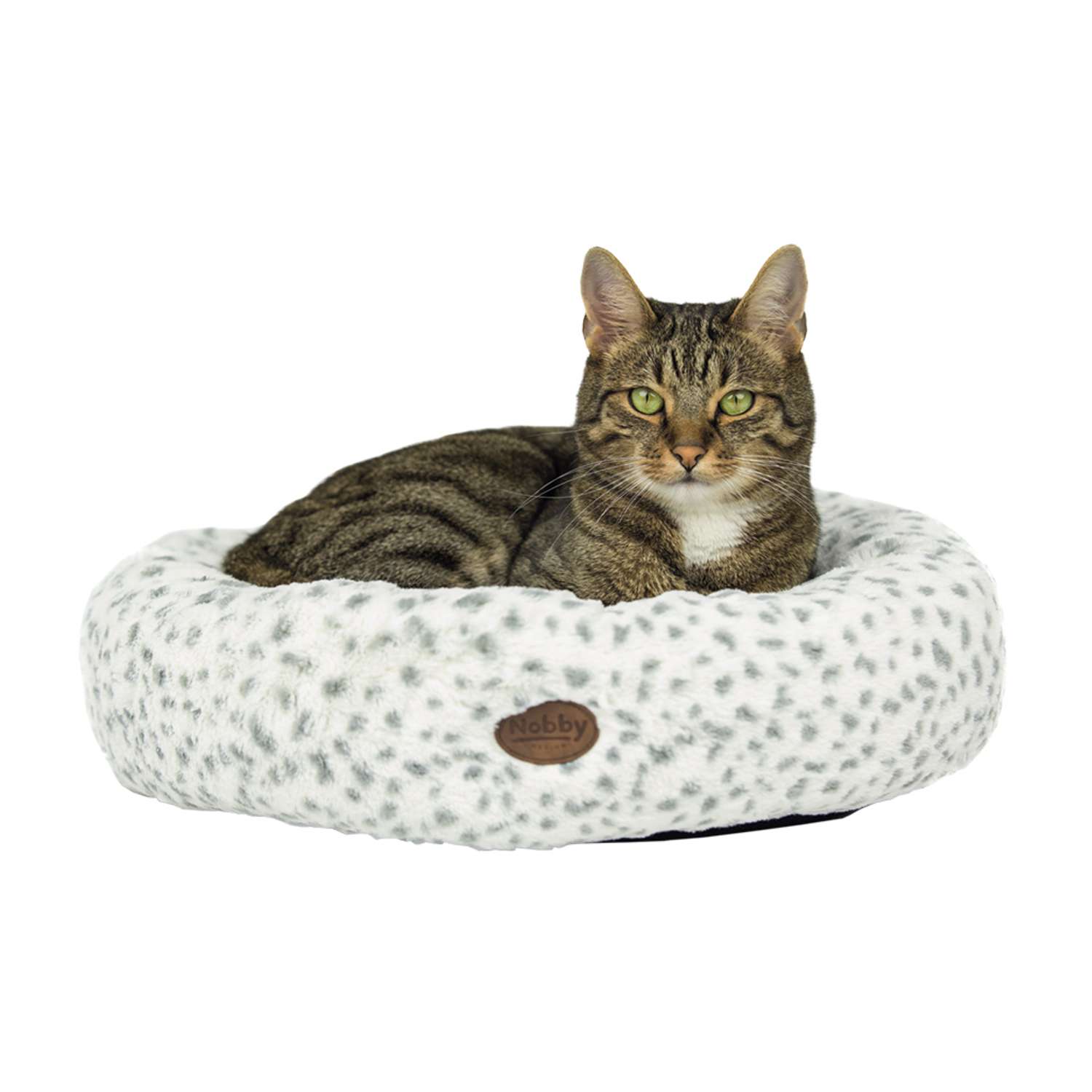 [0] => Leopardgrå; blød plys (100% polyester); betræk helt aftagelig med lynlås; fyld af bomuldsvat, vaskbar op til 30 °C, håndvask