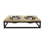 [description] => Med mangotræ og robust metalramme; inkl. 2 aftagelige skåle i rustfrit stål; sikker stand takket være skridsikre fødder