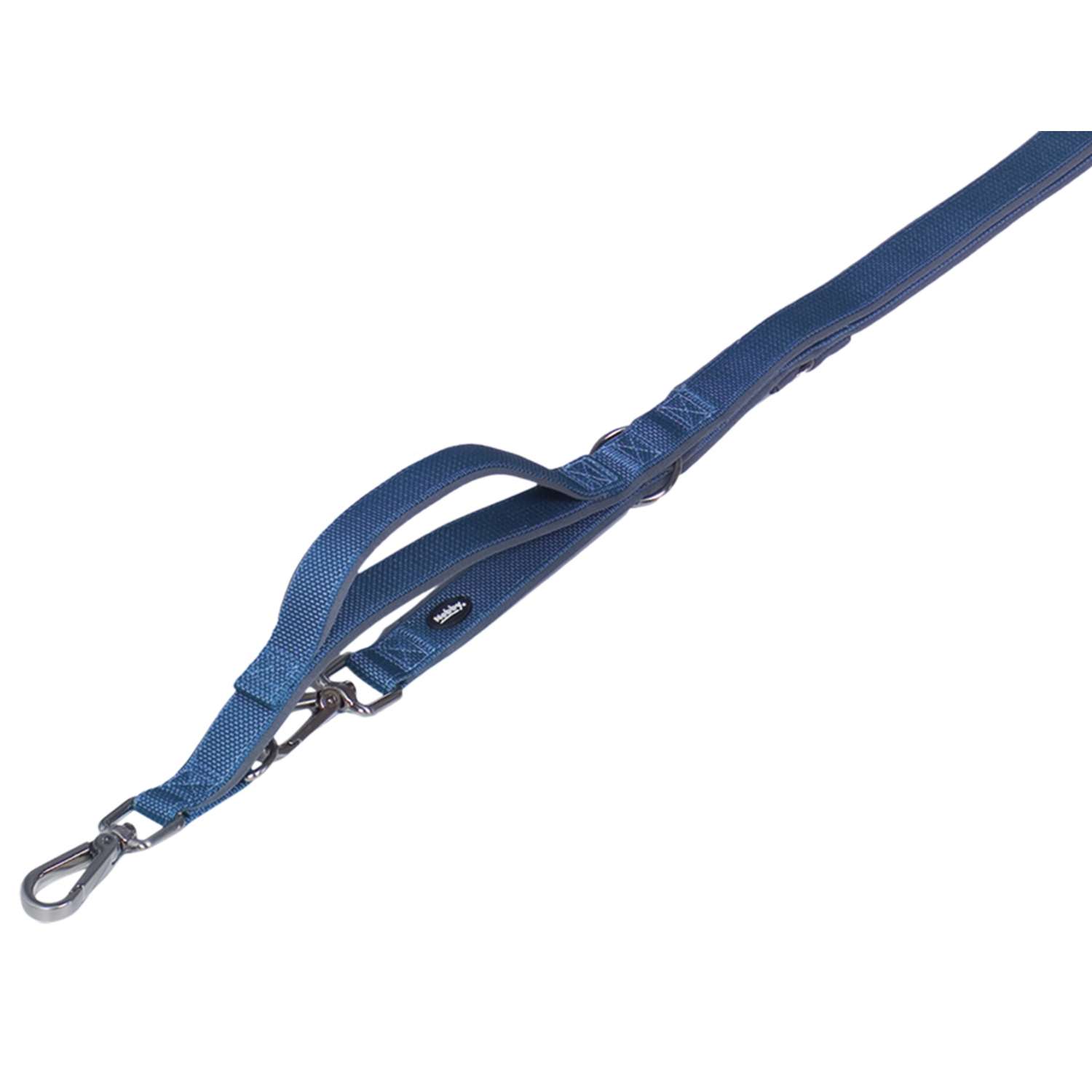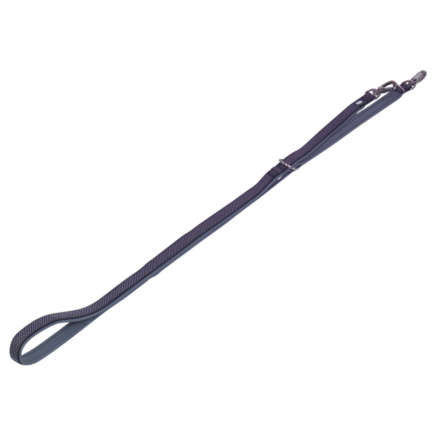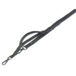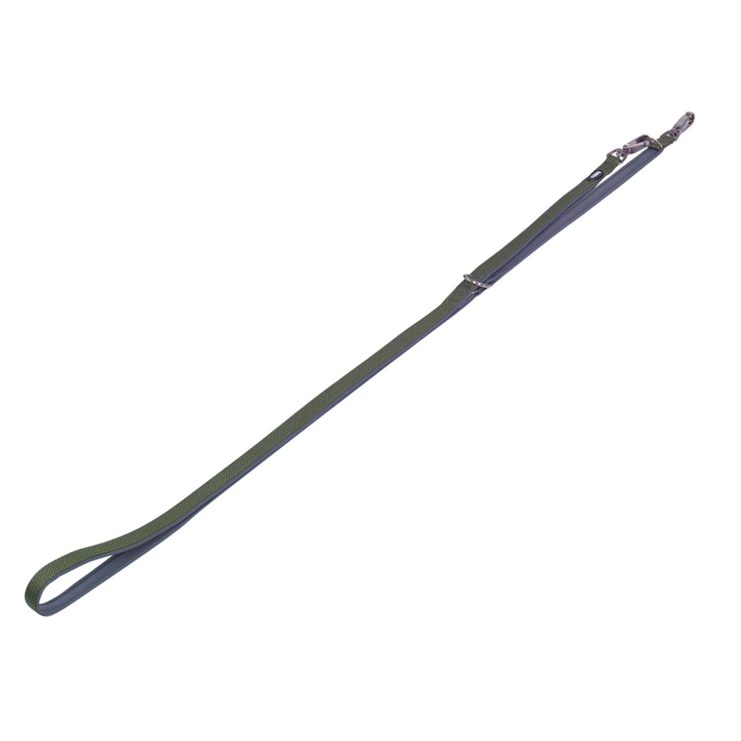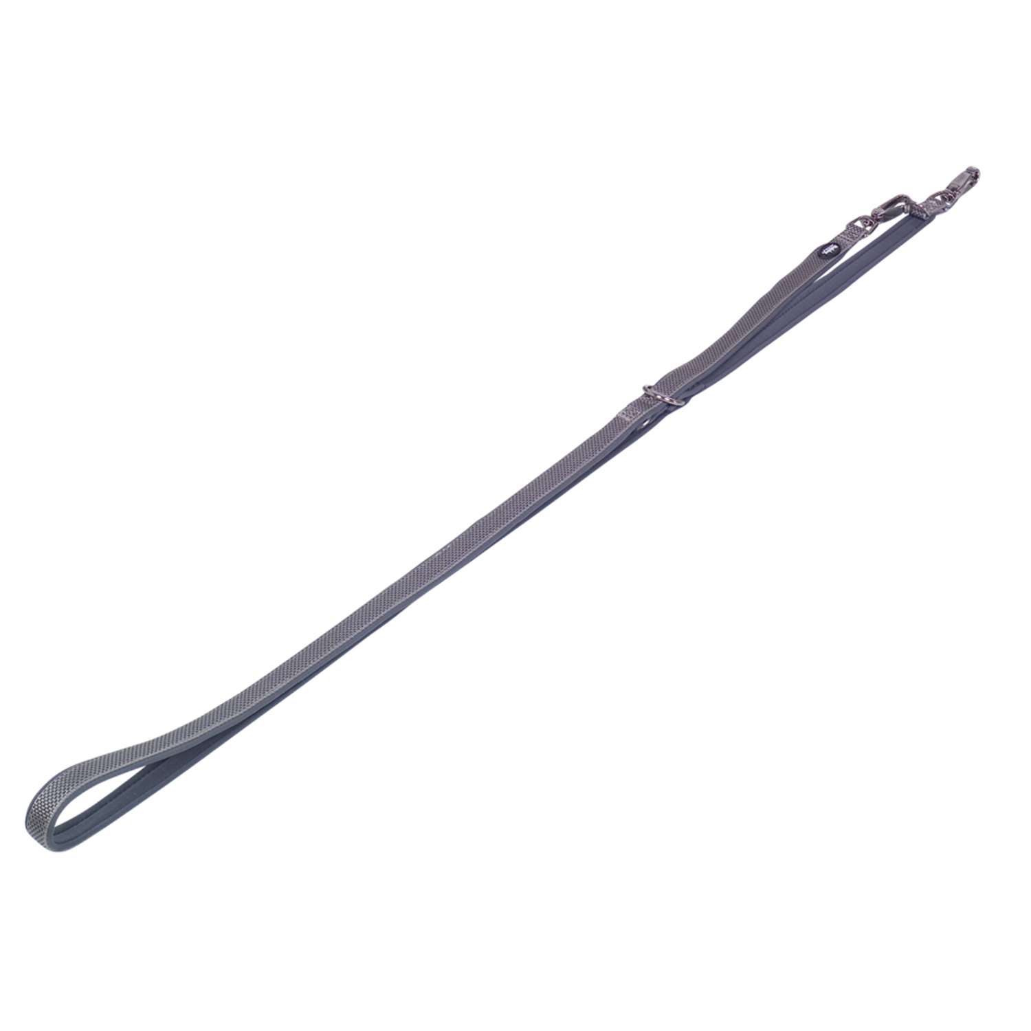 Lækker Dressurline i Nylon og neopren. Metaldele i mat sølv. Blød greb med neopren foring.