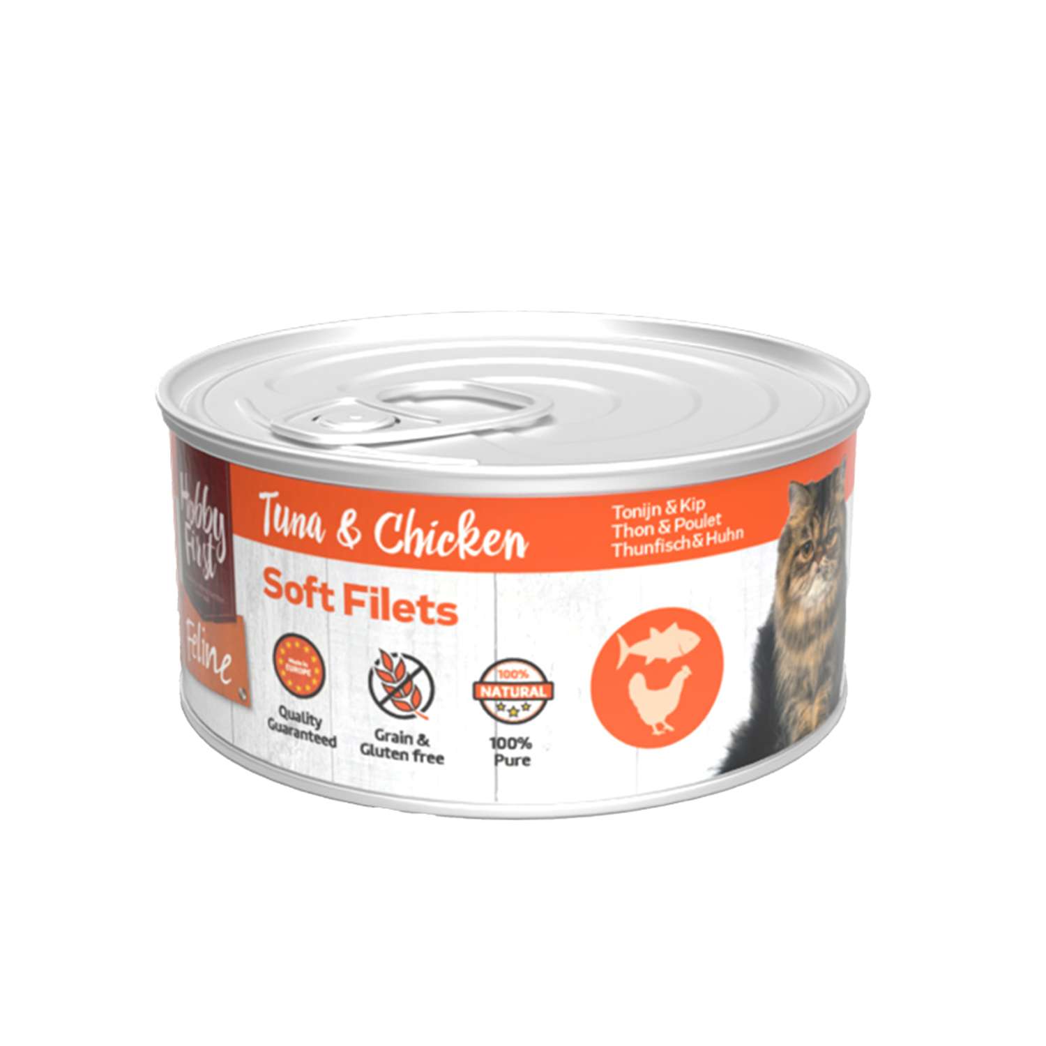 | Composition | 40% tunfilet, bouillon, 20% kyllingefilet, saflorolie. |