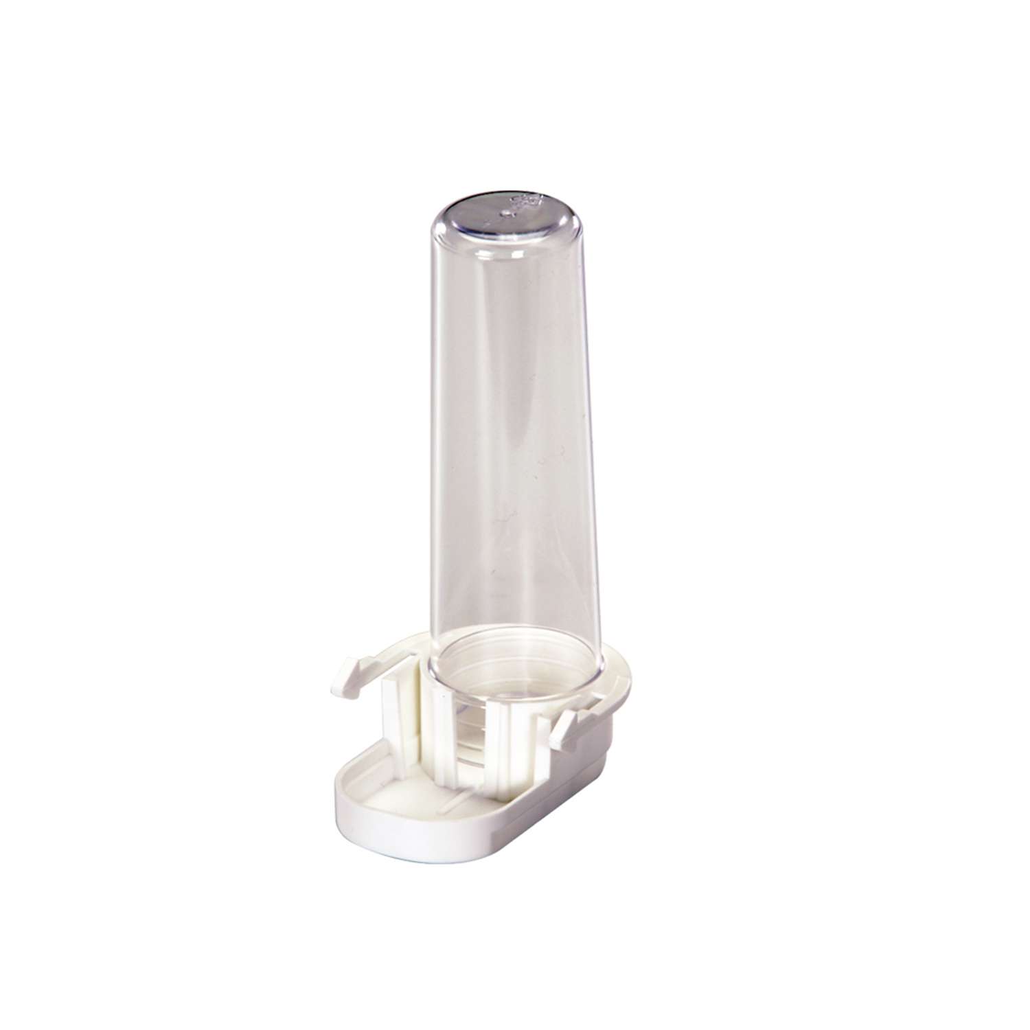 [0] => Foder- og vandautomat til fuglebur med vandret tråd, gennemsigtig plastikbeholder gør det nemt at se indholdet og genopfylde efter behov.