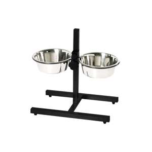 [0] => Højdejusterbar foderautomat med to skåle.