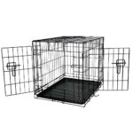 Transportbur til bilen med aftagbar plastbakke og 2 døre. Låget er sort og buret fås i forskellige størrelser. Perfekt til at transportere dit kæledyr sikkert på ture.