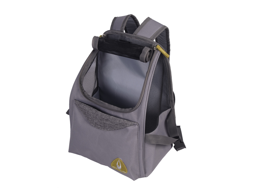 Slidstærkt mikrofiber, vaskbart; topnetvindue kan åbnes helt; stor lomme til tilbehør; med polstrede skulderstropper; op til ca. 6 kg
