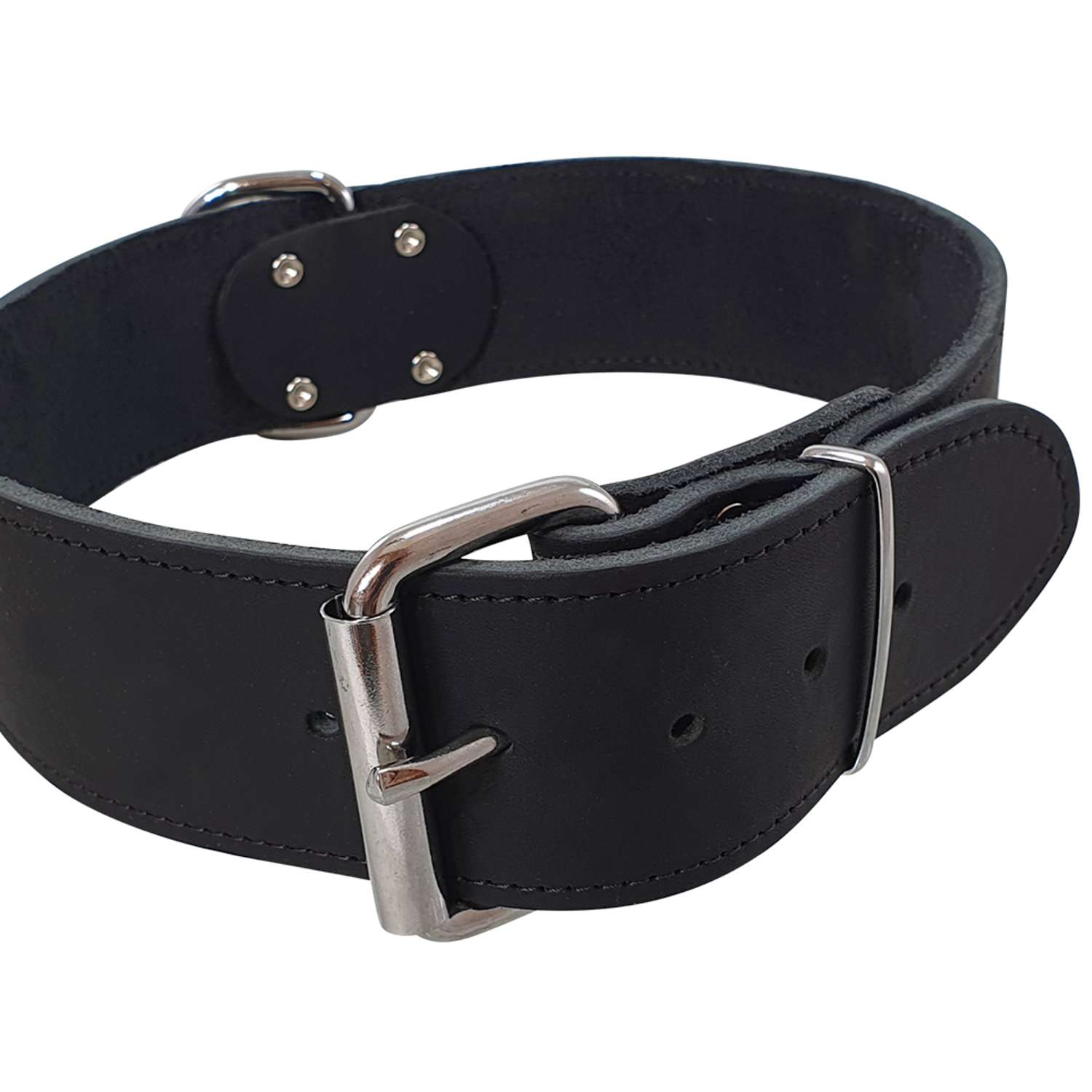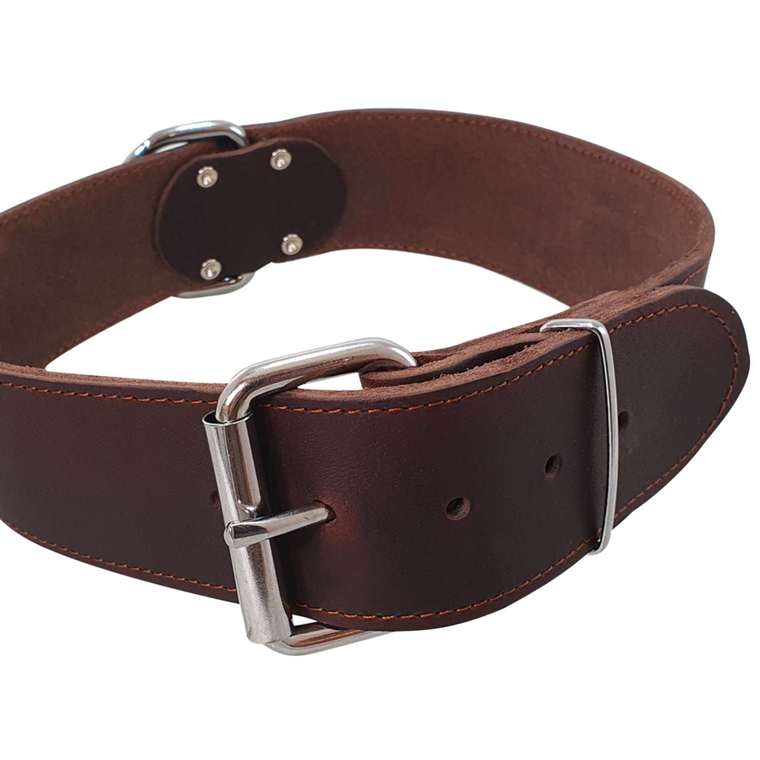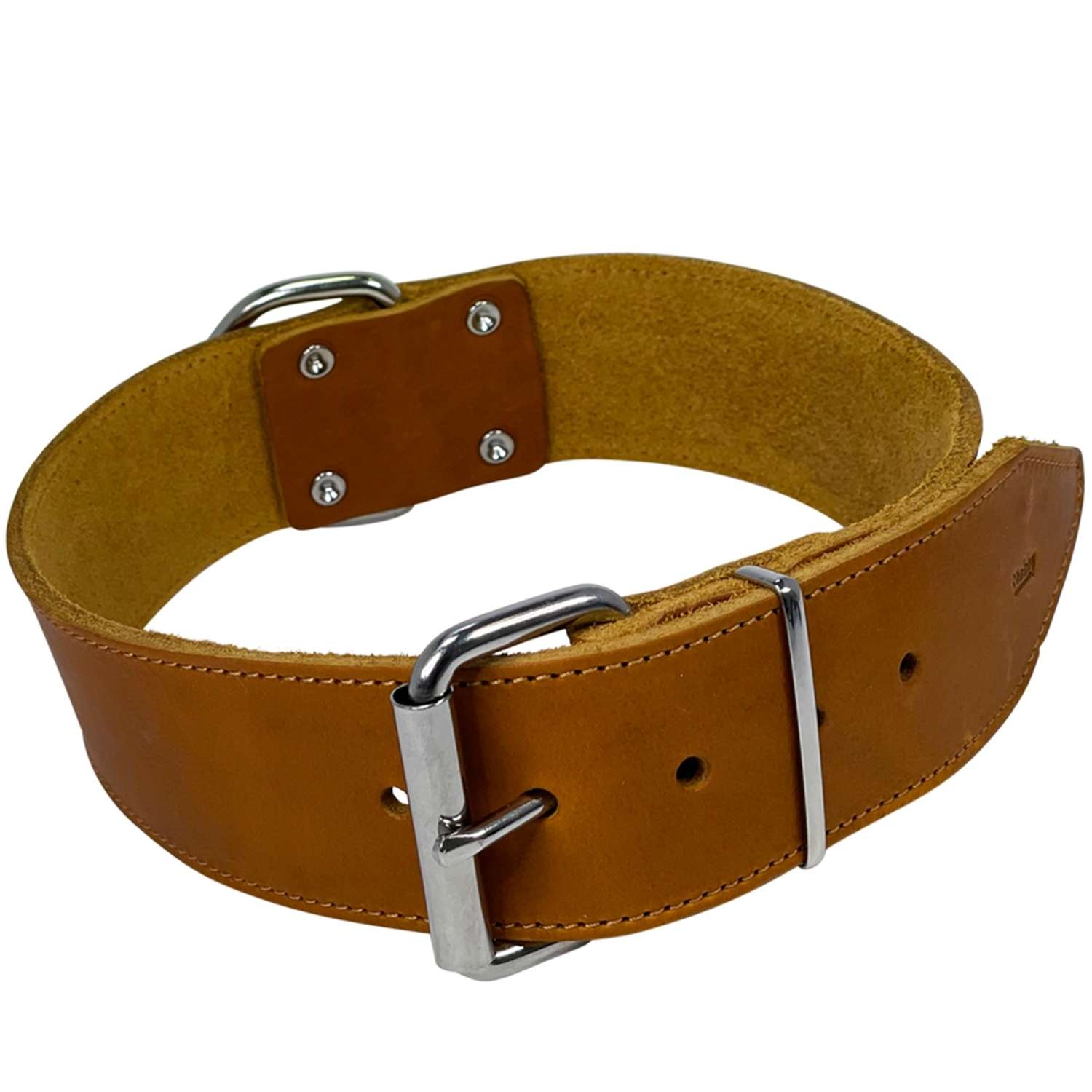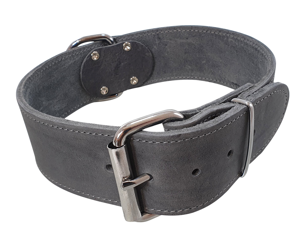 [0] => Ekstra bredt hundehalsbånd i læder.