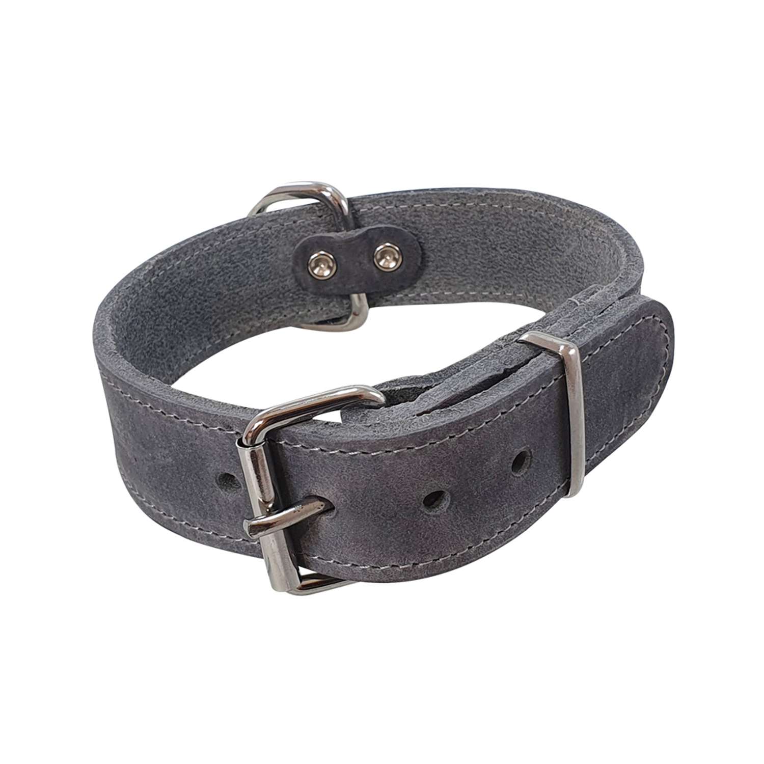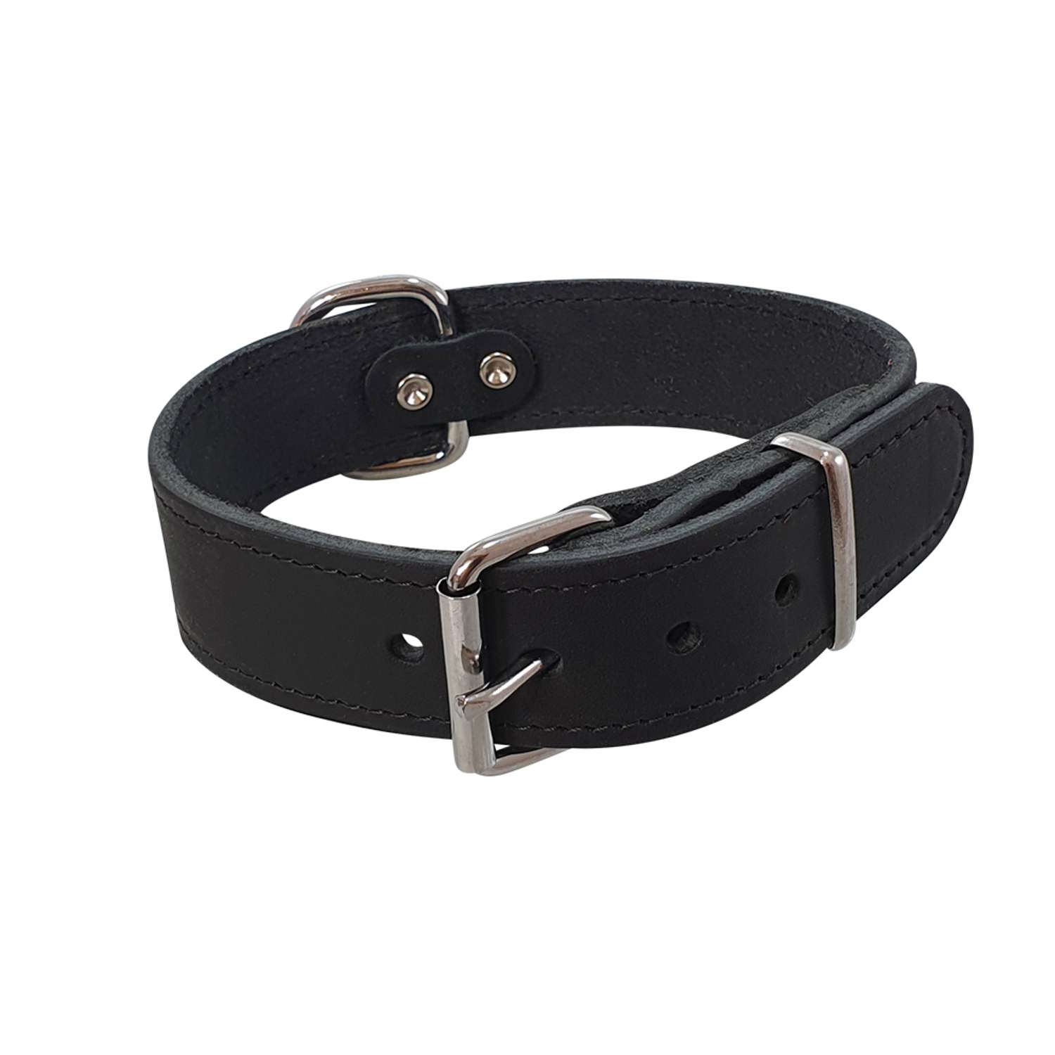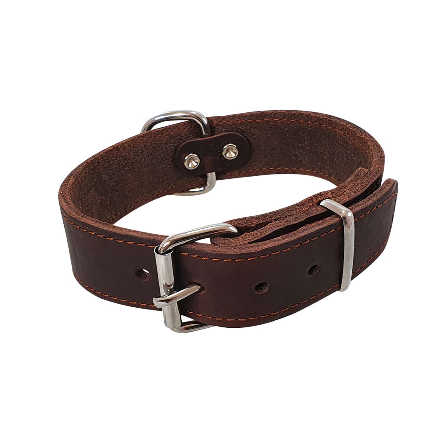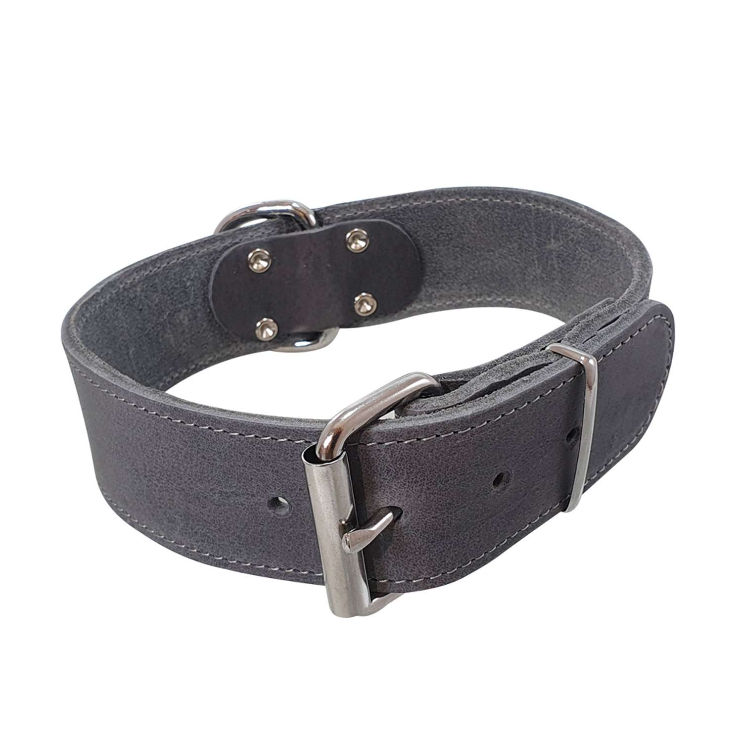 [0] => Ekstra bredt hundehalsbånd i læder.