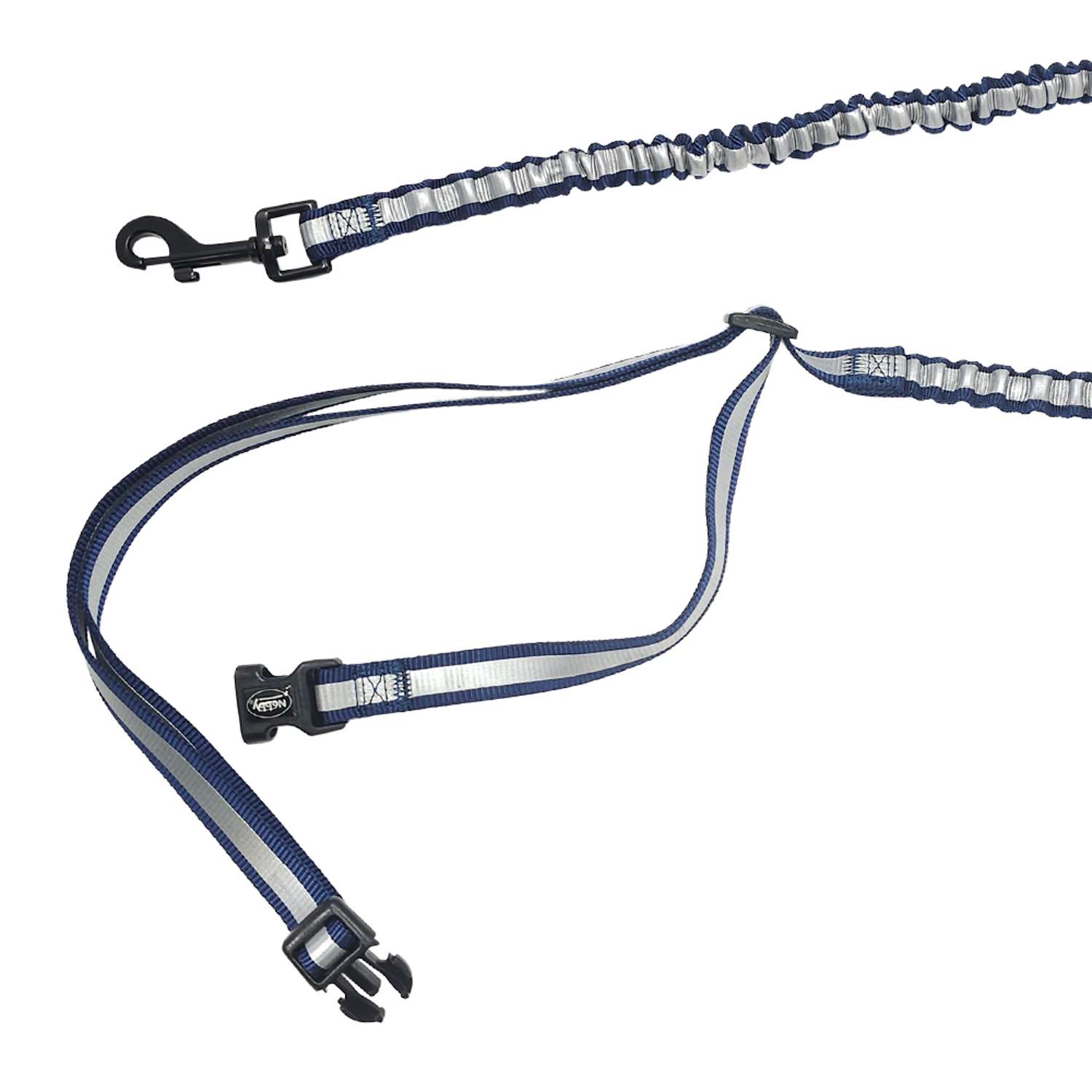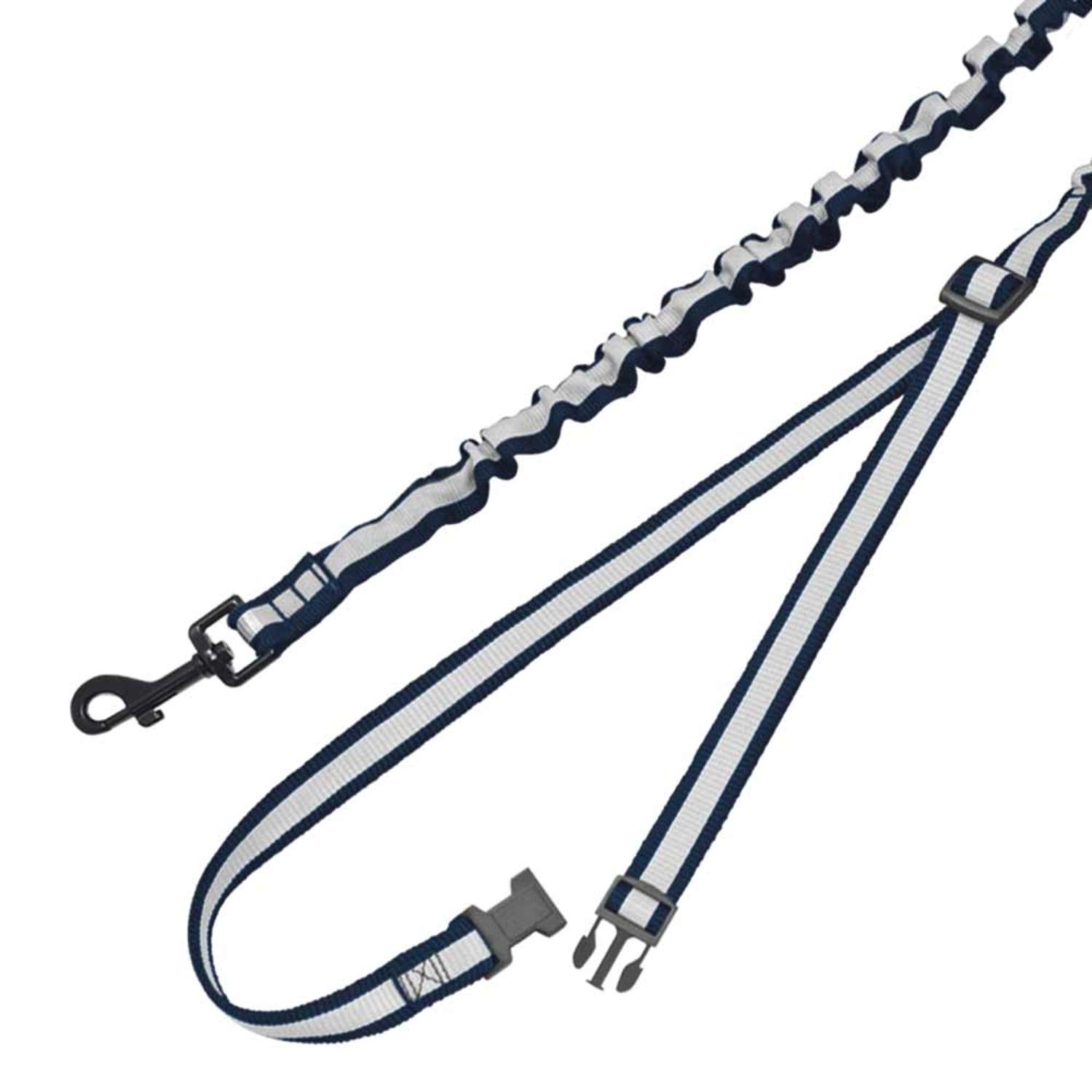 [0] => Nylon løbeline med reflekterende striber; line lavet af strækmateriale (fra livrem eller håndløkke); livrem maks. 105 cm lang