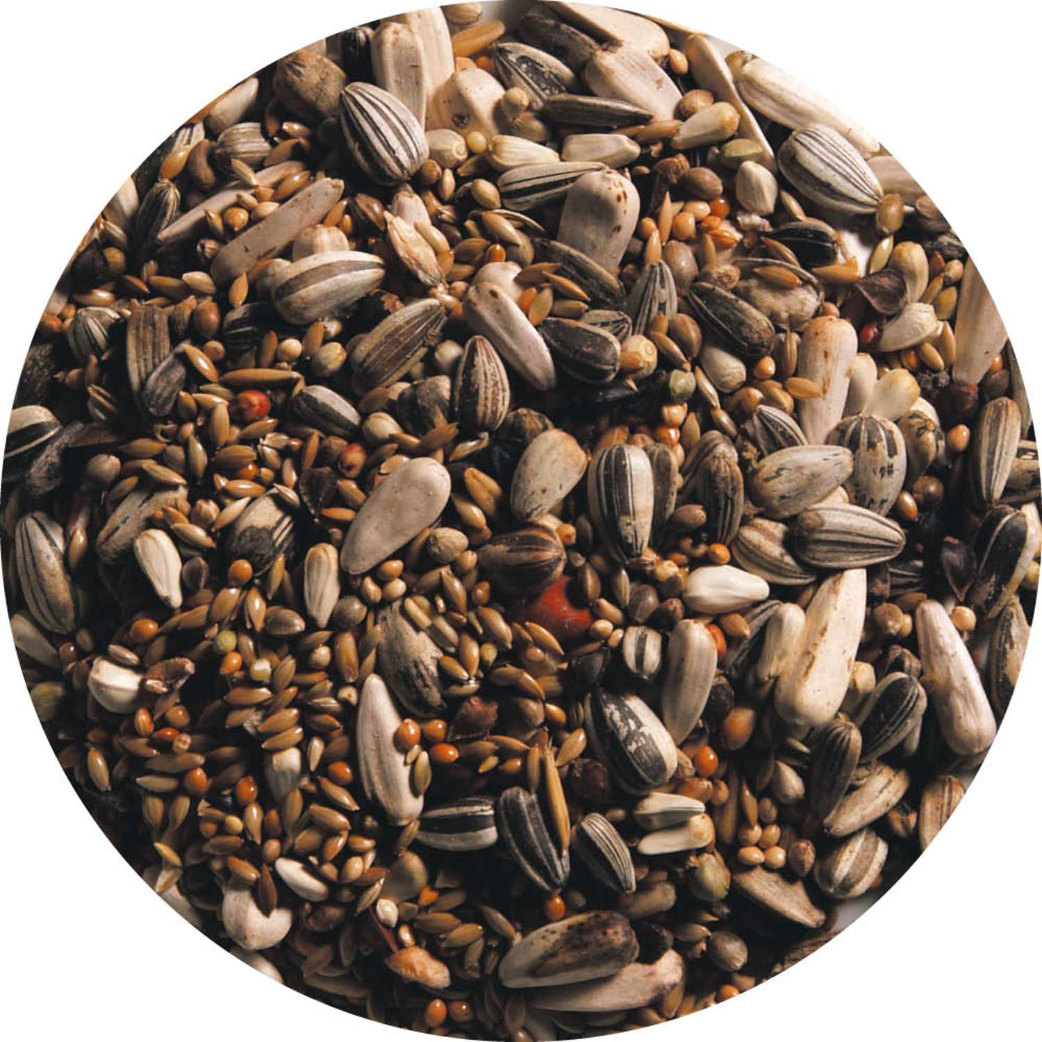 | Composition | Kanariefrø, solsikke, kardi, hamp, gul hirse, hvid hirse, boghvede, havre, hvid solsikke, hvede, milo, nigerfrø. |