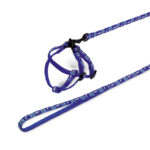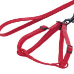 Sæt med line og sele til kaniner og andre små dyr. Lavet af nylon og med en line på 1 meter og en sele, der er nem at håndtere. Forskellige farver.