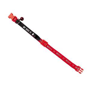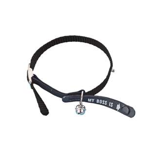 Kattehalsbånd af nylon med elastik og klokke. Læderstroppen kan mærkes på bagsiden. Fås i forskellige modeller, størrelser og farver. Se varianterne.