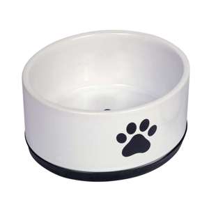 Hvid; indvendigt og udvendigt med trykte poter; aftagelig skridsikker silikone-ring