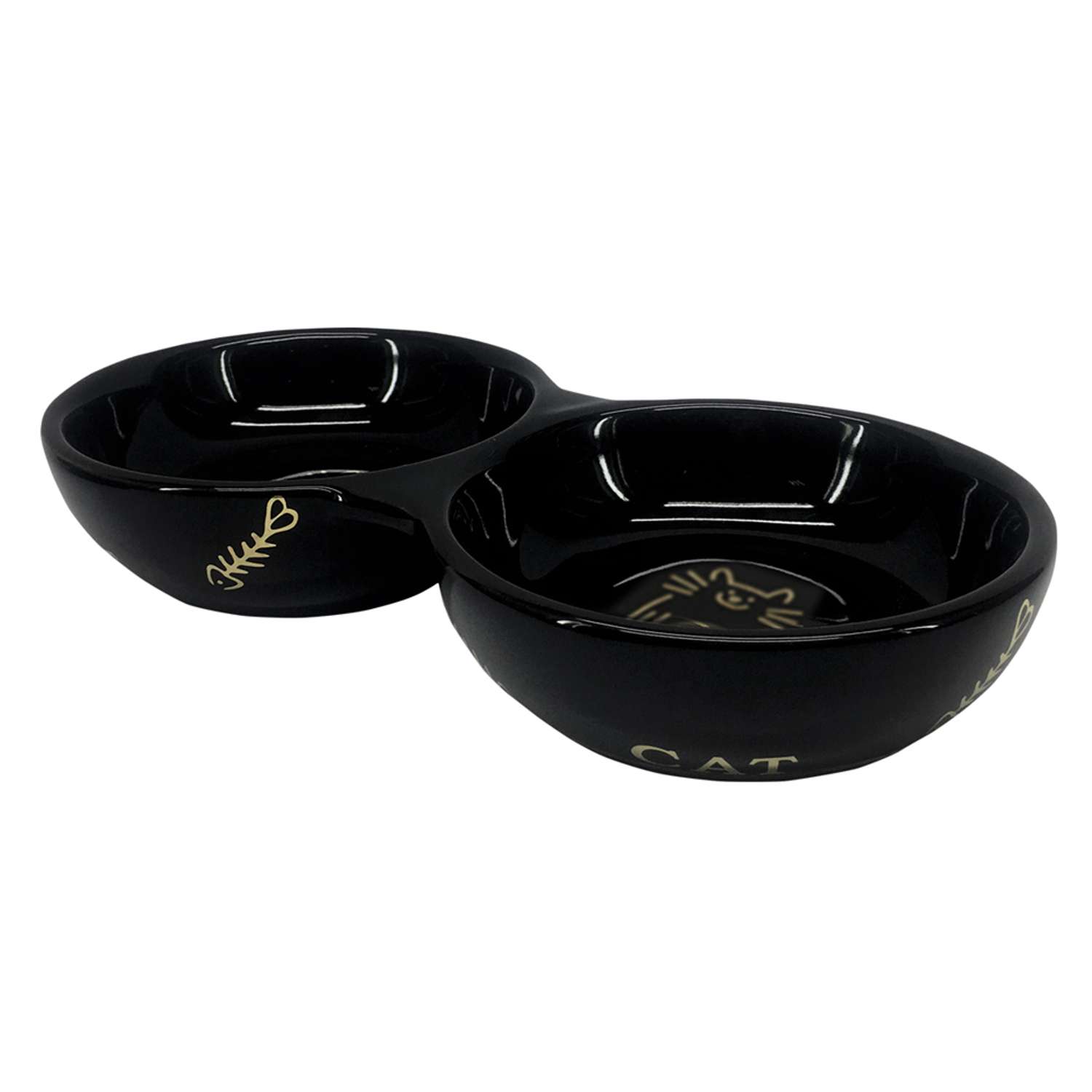 [0] => Ceramic cat double bowl "Golden Cat" 22,0 x 4,0 cm, 2 x 0,13 l black
