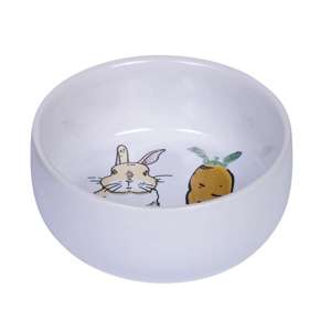 [0] => Keramisk gnaverskål med kaninmotiv.
