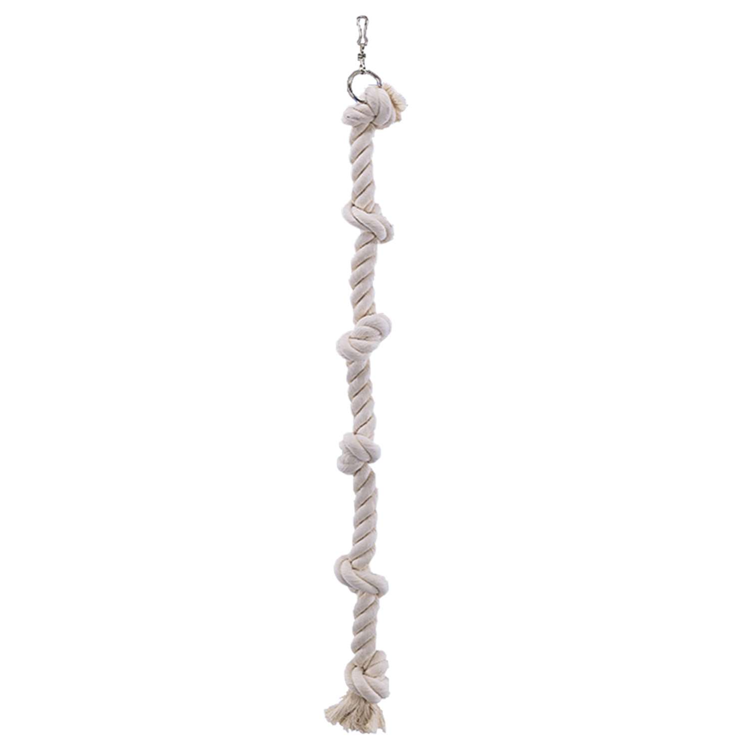 [0] => Klatrereb med knuder i forskellige længder. Perfekt aktivitetslegetøj til din papegøje eller parakit.