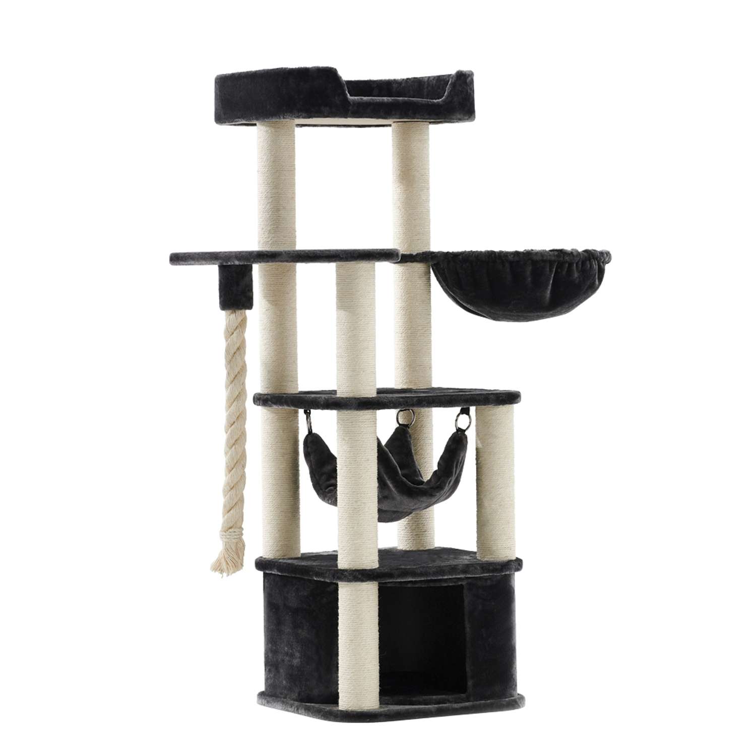 Basestørrelse: 50 x 50 cm; højde: 145 cm; kradsestammer: sisal, Ø 9 cm; farve: mørkegrå