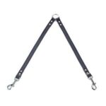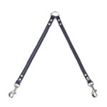 Læderkobbel til to hunde i sort-brun farve i forskellige størrelser. Lavet af kvæg læder.