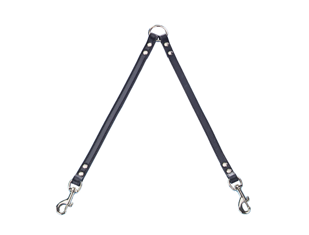 [description] => Læderkobbel til to hunde i sort-brun farve i forskellige størrelser. Lavet af kvæg læder.