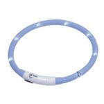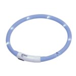 LED-halsbånd til hvalpe og små hunde i lyseblå eller pink farve. Lavet af regnbestandigt silikone og genopladeligt via USB. Synlig op til 500 m og kan bruges i op til 2 timer. Individuelt justerbar længde.