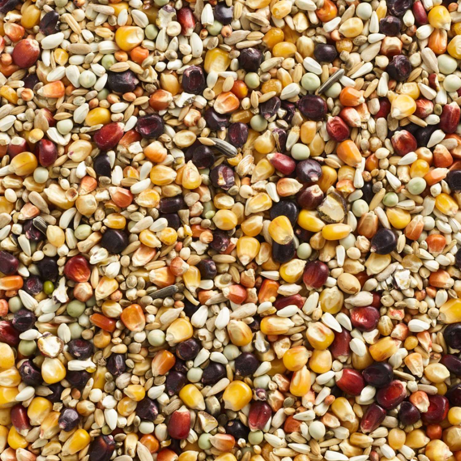 | Composition | Majs sort 15% Majs krybber 10% Majs bordeaux 10% Majs popcorn 10% Majs orange 10% Saflorfrø 8% Dari hvid 8% Hampefrø 8% Milo 4% Afskallet havre 4% Solsikkefrø skrællet 4% Ærter grønne 3% Paddy ris 3% Hørfrø 3% |