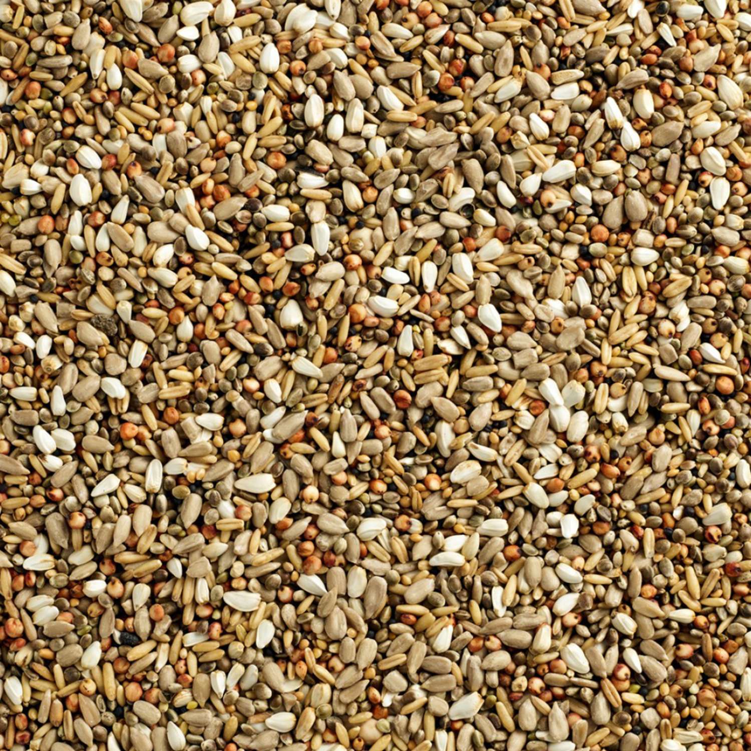 | Composition | Hampefrø 20% Afskallede solsikkefrø 20% Afskallede havre 20% Milo 15% Saflorfrø 15% Hirse 5% Sorte rapsfrø 5% |