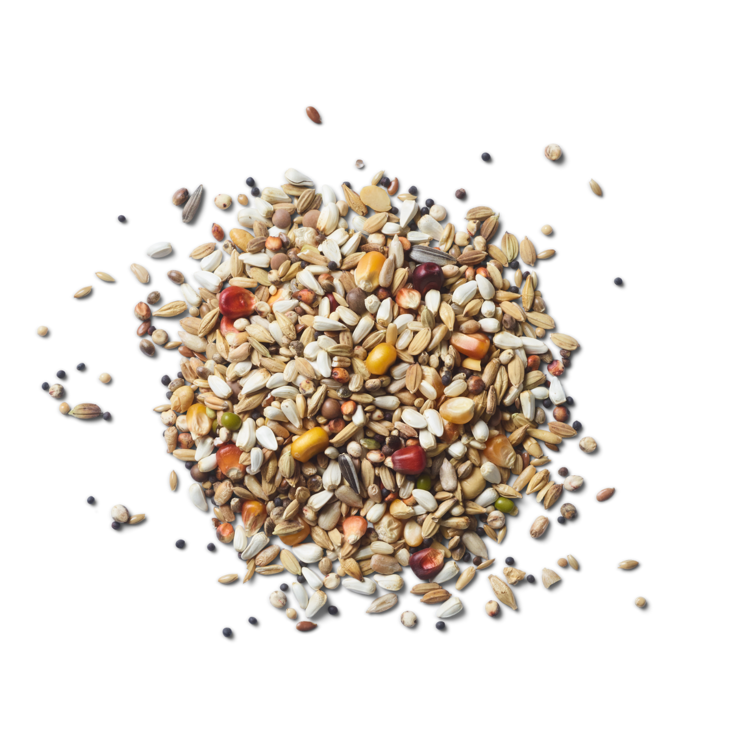 | Composition | Karde, Dari, Paddy-ris, Bordeaus-majs, Majskamre, Orange-majs, Popcornmajs, Due-ris, Afskallet havre, Hvid hvede, Byg, Sorghum, Hvid hirse, Raps, Ristede sojabønner, Vitsen, Kanariefrø, Mungbønner (Kadjang idjoe), Hampfrø, Hørfrø, Linser, Marietidsel-frø, Gul hirse, Hvid perilla, Afskallede og stribede solsikkekerner |