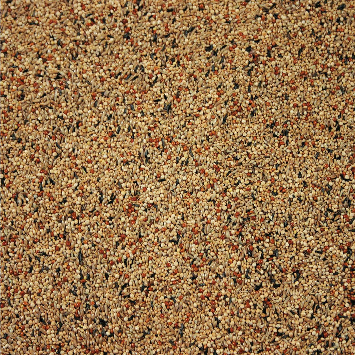 | Composition | Kanariefrø 20%, Japan hirse 20%, Mahair hirse 15%, Senegal hirse 15%, Algier hirse 10%, Hvis hirse 10%, Niger frø 5% og Græsfrø 5%. |