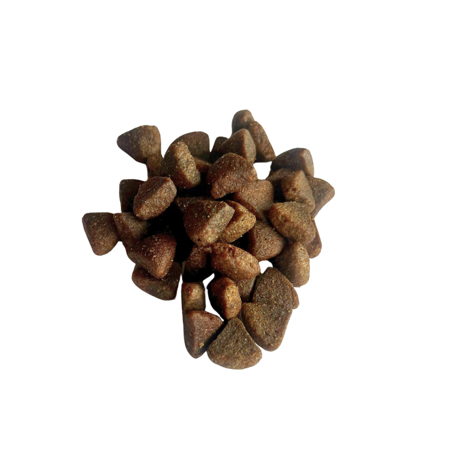| Composition | Peruviansk anchoveta (22%), ris (21%), ærter (15%), blæksprutte (12%), lakseolie (11%), kartoffelstivelse (6%), kostfibre (3%), roetrævler (3%), hydrolyseret lakseprotein (2%), alger rige på DHA (1%), lecithin (1%), FOS, MOS, L-carnitin, glucosamin og chondroitinsulfat. |