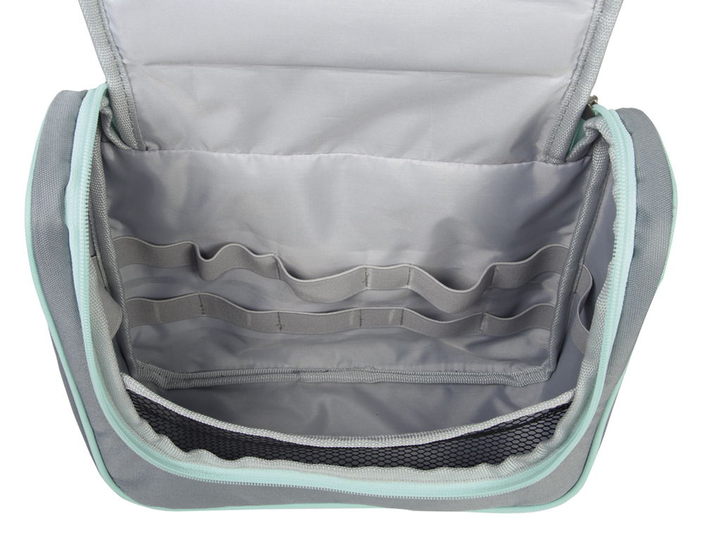 [0] => Mikrofiber, vaskbar; to store opbevaringsrum og lille netlomme; krog til ophængning og håndtag
