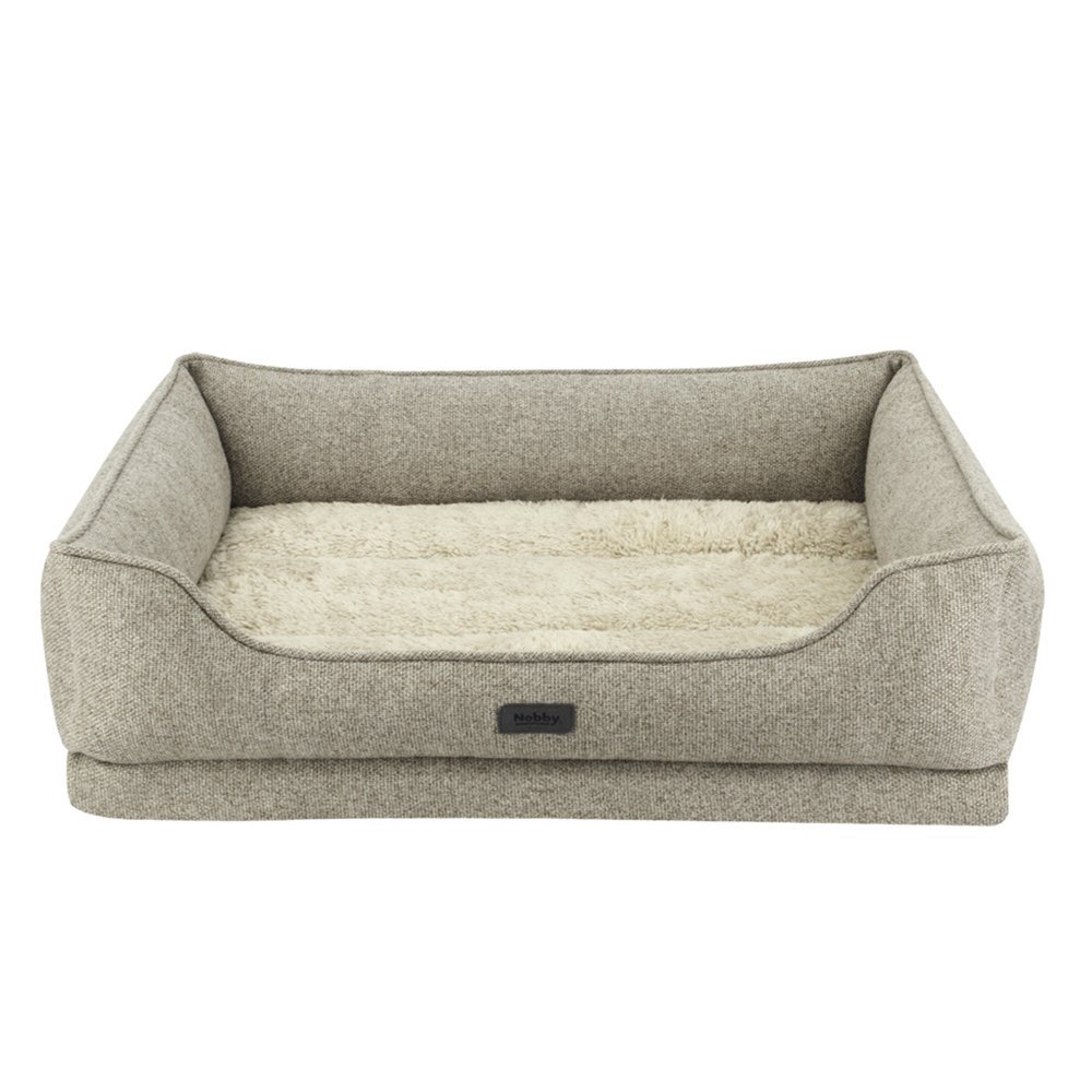[description] => Mikrofiber i linned-look og blødt plys; memory-skum, komfortskum; aftageligt betræk med lynlås; skridsikker; særligt skånsom mod leddene