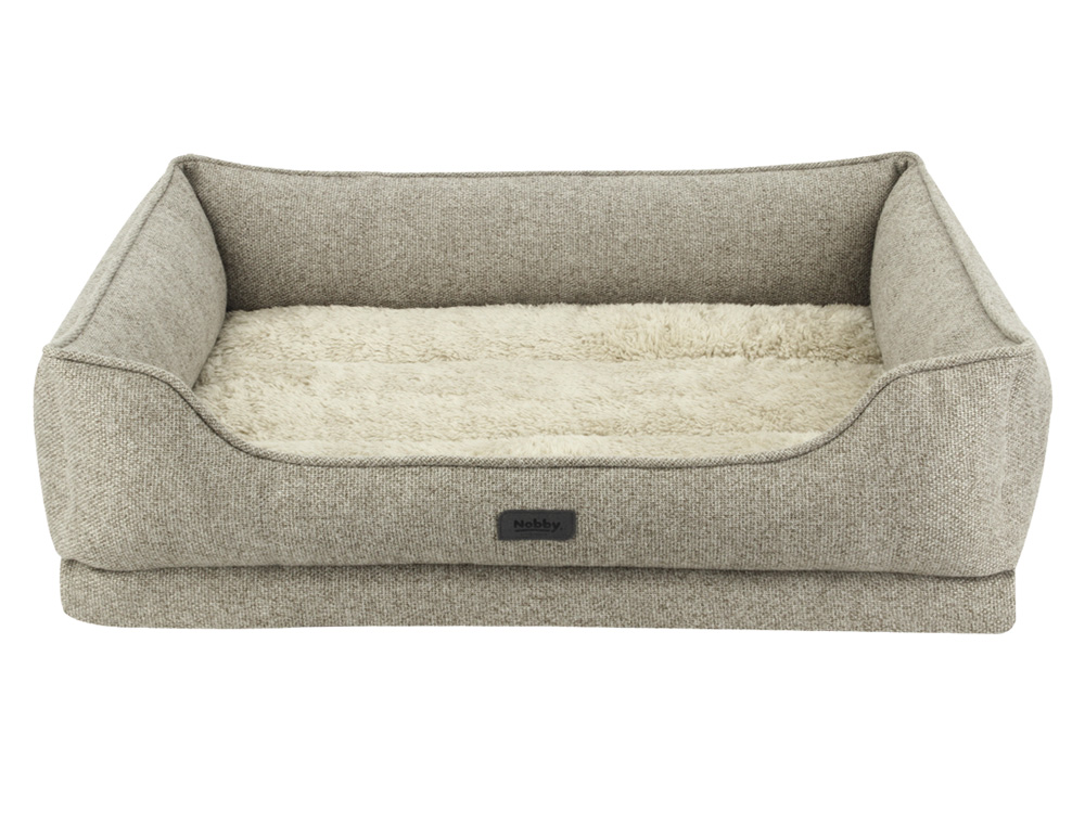 [0] => Mikrofiber i linned-look og blødt plys; memory-skum, komfortskum; aftageligt betræk med lynlås; skridsikker; særligt skånsom mod leddene