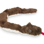Plysslange i blød plys med 3 XL squeakers i kroppen og 1 squeaker i hovedet. Brun eller grøn og 85 cm lang.