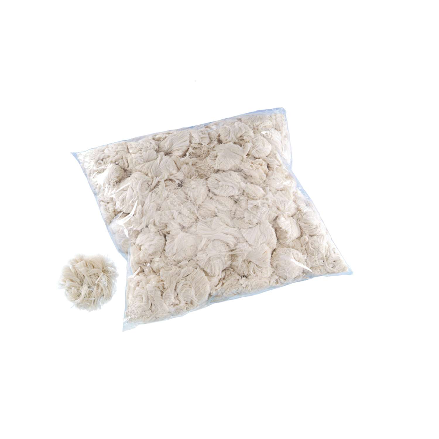 [0] => Redemateriale i råhvidt, ubleget bomuldsfiber af premium kvalitet, skåret i ca. 5 cm stykker, uden spildmateriale.