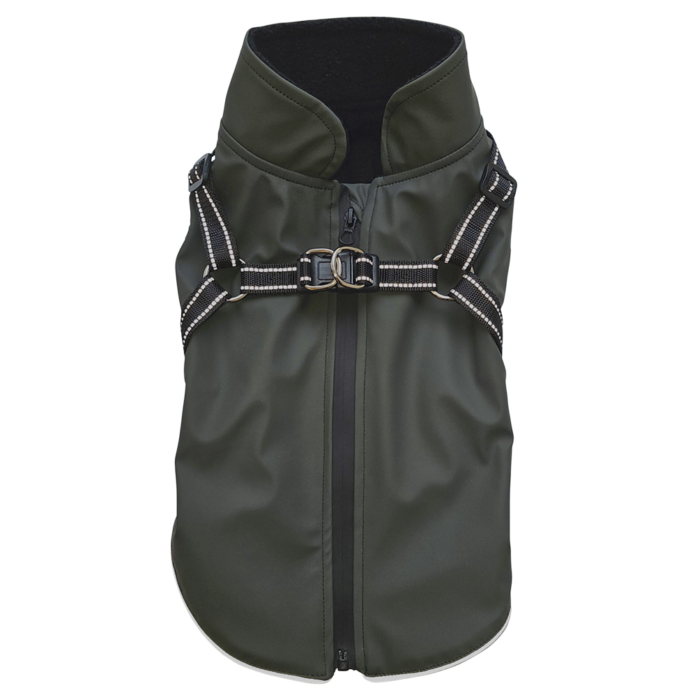 [short_description] => Vandtæt hundefrakke med sele og reflekser.