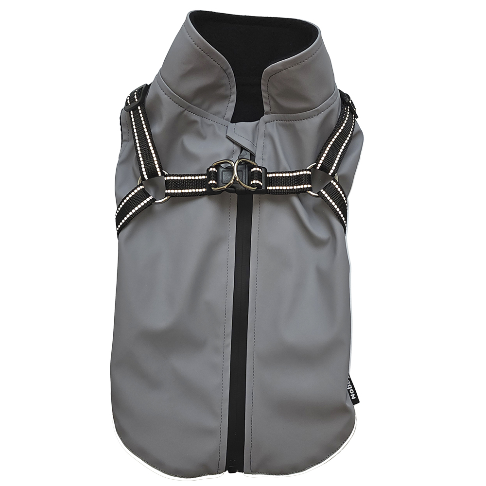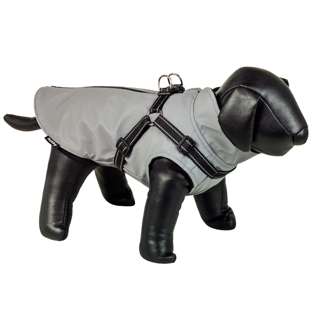 [0] => Vandtæt hundefrakke med sele og reflekser.