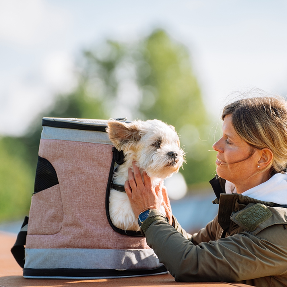 [description] => Slidstærk mikrofiber, vaskbar; op til ca. 10 kg; god ventilation; med karabinhage indeni og aftagelig bund; med to lommer til utensilier; med bækken- og bryststrop og polstrede rygstropper