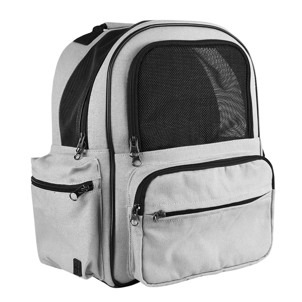 Slidstærkt mikrofiber, vaskbart; til katte og hunde op til ca. 7 kg; god luftcirkulation på grund af netindlæg; stor indgangsåbning; 4 utensilrum; bagsiden ekstra polstret; indvendigt med karabiner og aftagelig bund; fås i