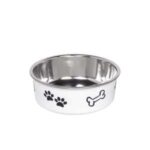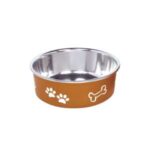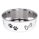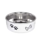 Hundeskål “Fusion” fås i forskellige farver og med forskellige kapaciteter fra 0,50 liter og en diameter fra 13 cm. Skålen er anti-slip og har en integreret gummiring, der gør den praktisk at vaske i opvaskemaskinen. Skålen er dekoreret med poter og benmotiver og fås i forskellige størrelser og farver. Ideel til både hjemmebrug og på farten.