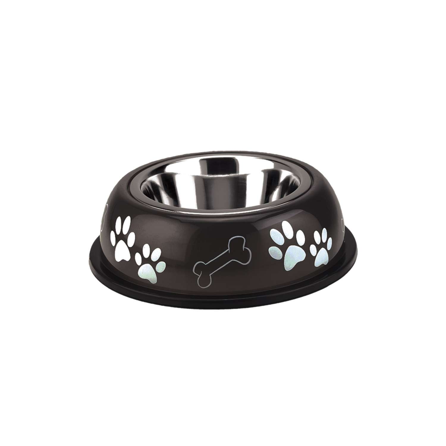 “Nice Diner” skål i forskellige farver, med aftagelig rustfri stål skål og anti-slip gummi ring. Skålen kan tages af plastikholderen og begge dele kan vaskes i opvaskemaskinen (uden gummi ringen). Skålen fås i forskellige farver og størrelser.