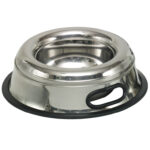 Rustfri stål skål på 0,85 eller 1,55 liter med anti-spild kant, der forhindrer vand og foder i at sprøjte ud af skålen. Skålen er også anti-slip, så den ikke glider rundt.