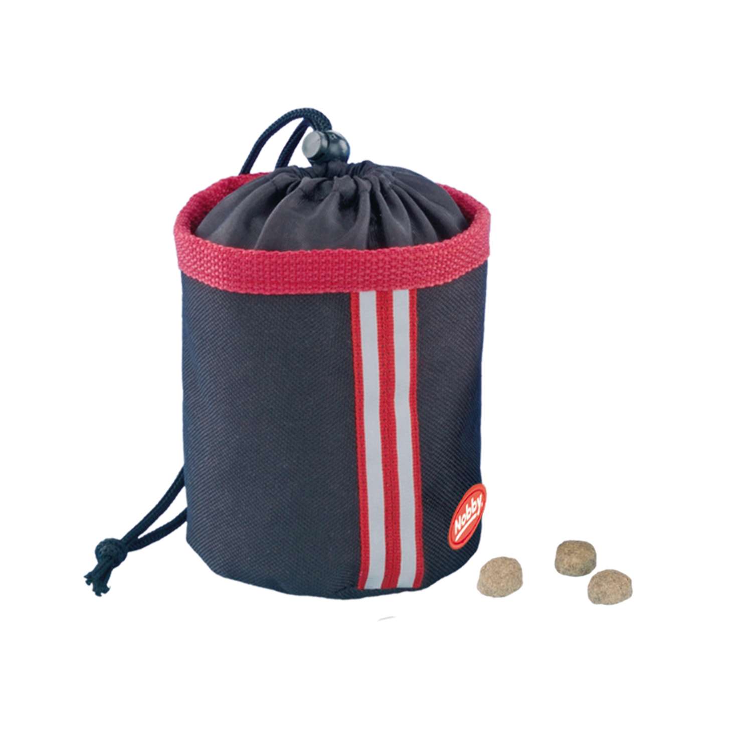 Snackpose i nylon med en diameter på 9 cm og en højde på 11 cm. Perfekt til træning og uddannelse, og kan fastgøres til bæltet med en klemme eller en krog-og-løkke-strop.