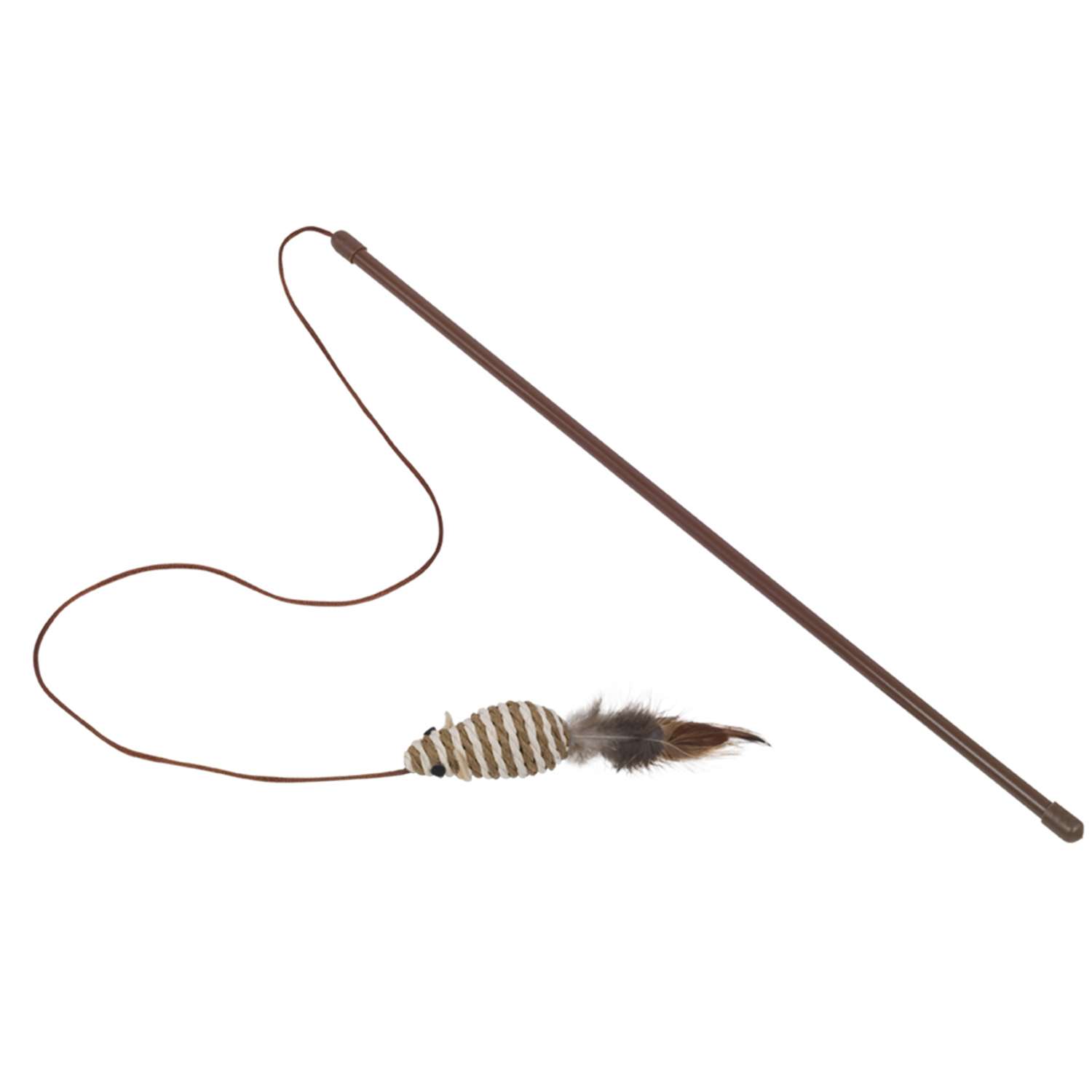 Stang med sisal rasle mus og fjer, legetøj med catnip; stang 45 cm, snor 76 cm, legetøj 7 cm